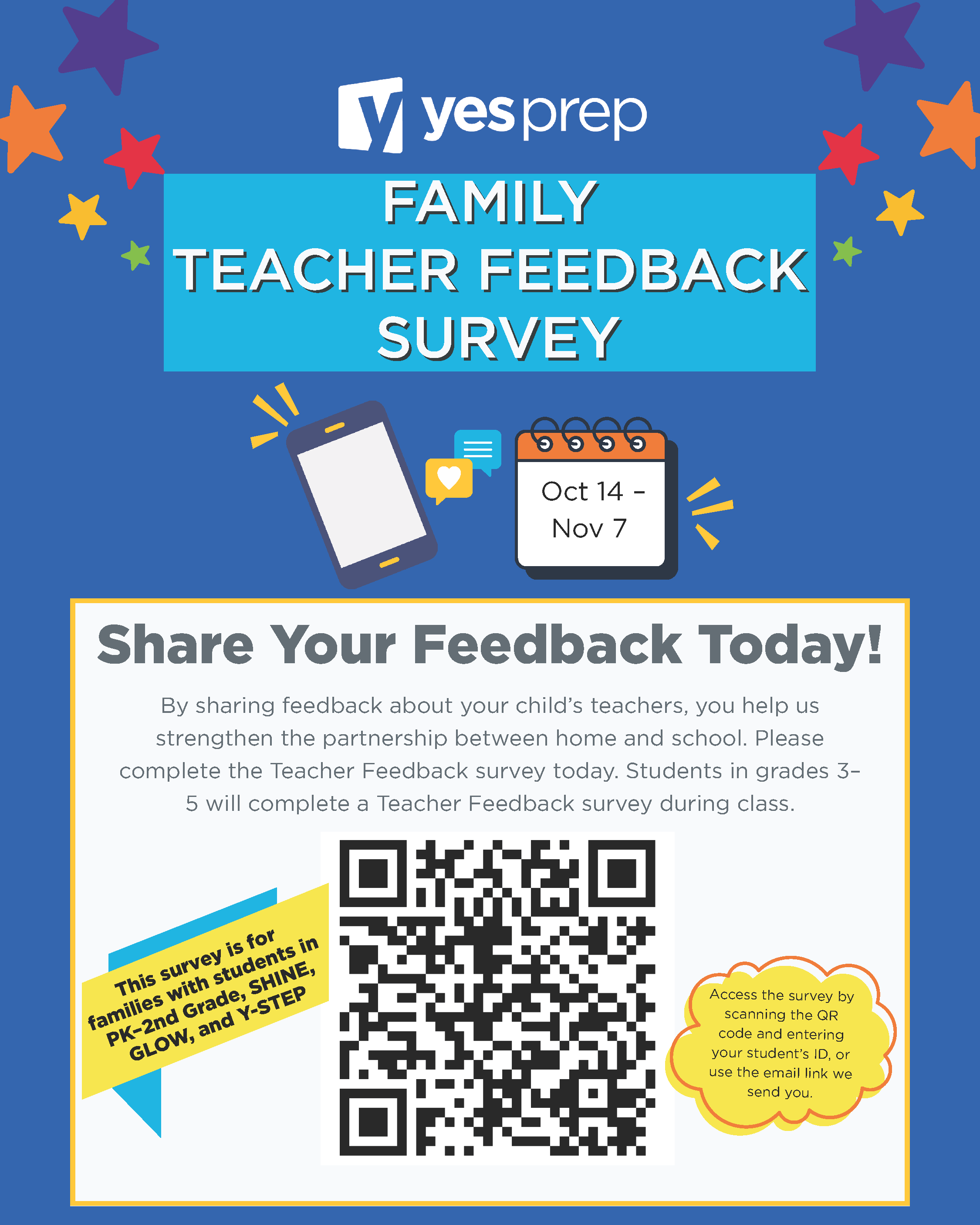 ๐ Check your inbox for an email titled: “YES Prep Teacher Feedback Survey Due 11/7.”